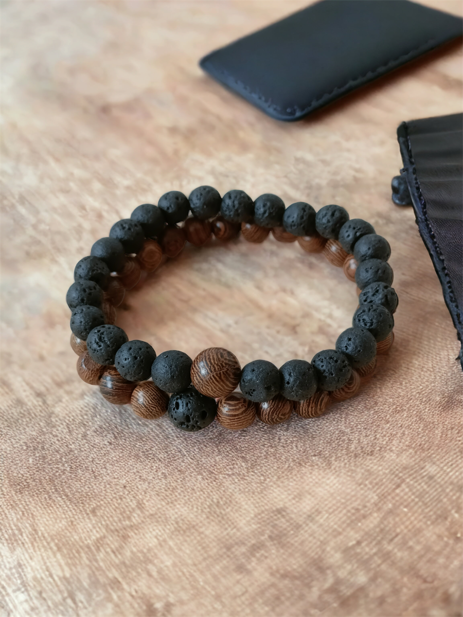 Natural Tiger Eye wood and Natural rock lava stone bracelets combo for men.
