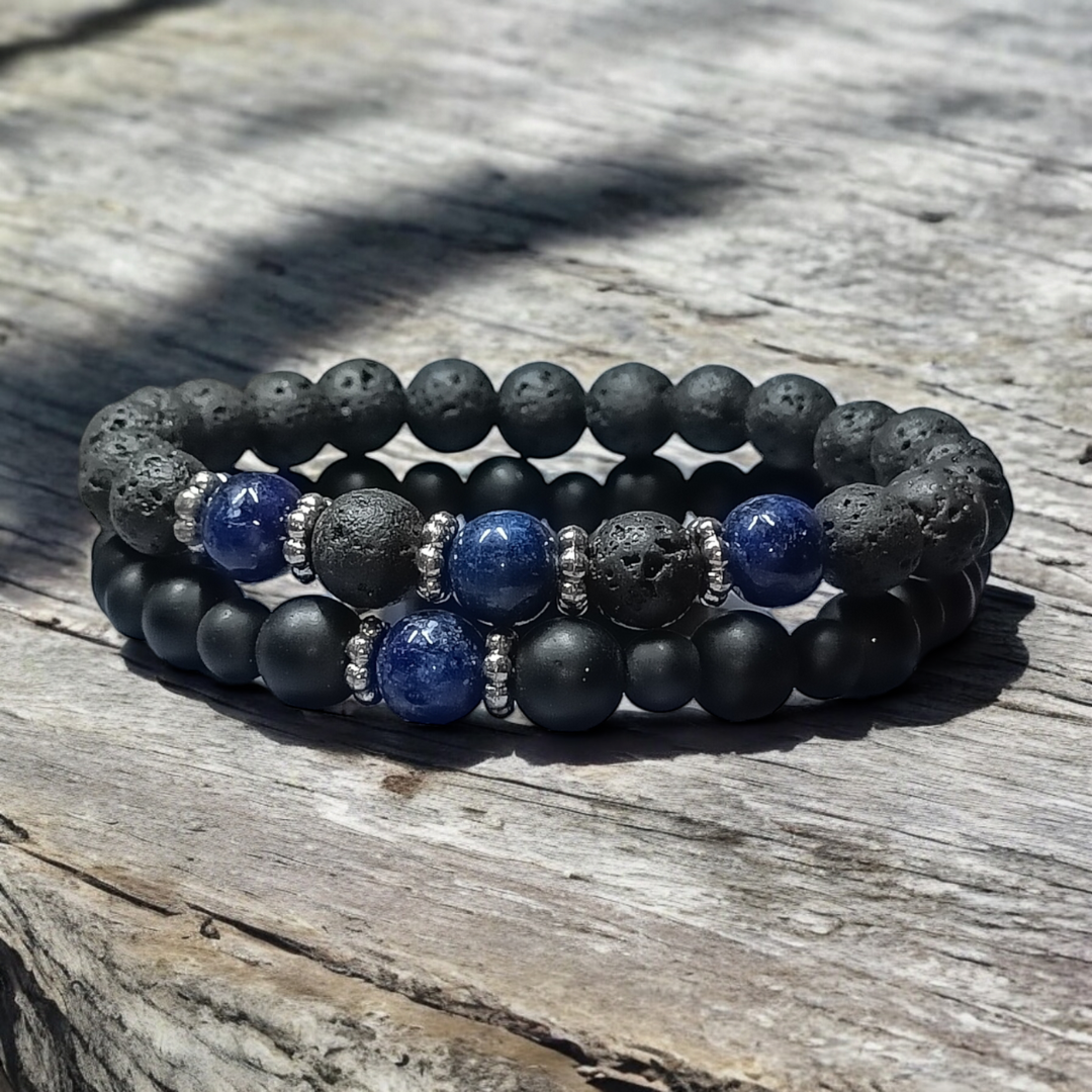 Natural Lapis Lazuli, black matte Onyx and Natural rock Lava stone .